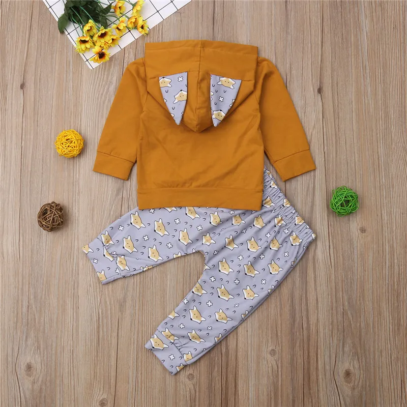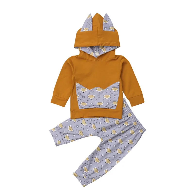 Cheap Price of 0-24M Cute Clothing Set Baby girl boy clothes Cartoon Fox Print Hooded Top Pant 2pcs Autumn Spring