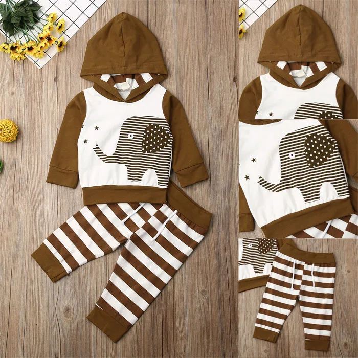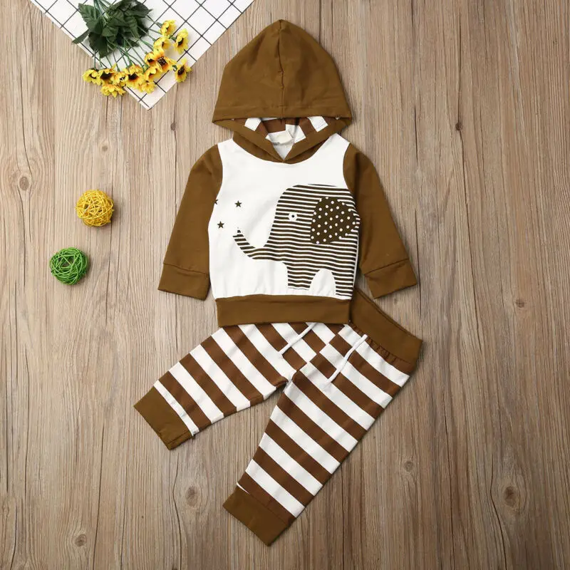 Special Price for 2pcs Toddler Baby Boy Clothes Cartoon Hoodie Tops + Striped Pants Outfits Tracksuit