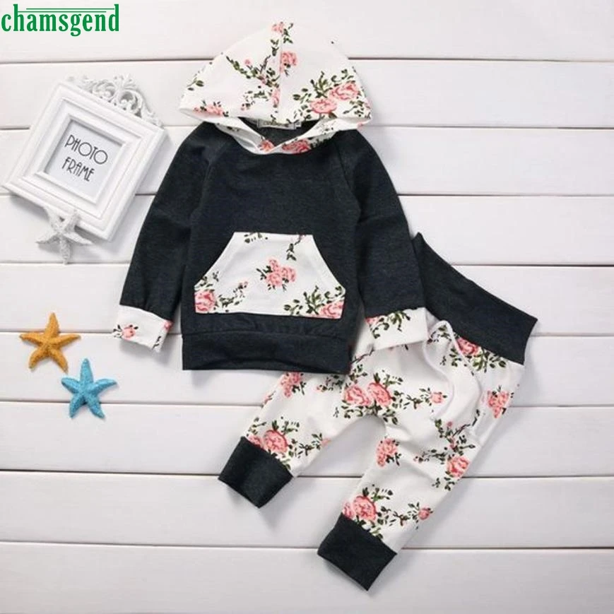 Cheap Chance for New dropship cute fashion 2pcs Toddler Infant Baby Boy Girl Clothes Set Floral Hoodie Tops+Pants Ou